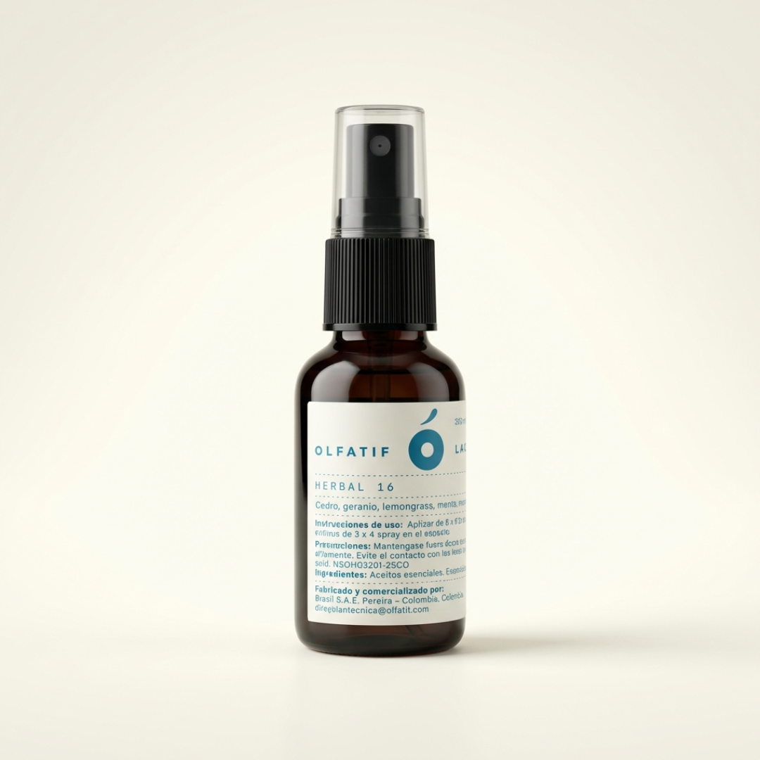 Herbal 16 (antes Purificante) es un spray para espacios con mezcla de 16 aceites esenciales que purifican los espacios de virus y bacterias. Ideal para eliminar olores en espacios.