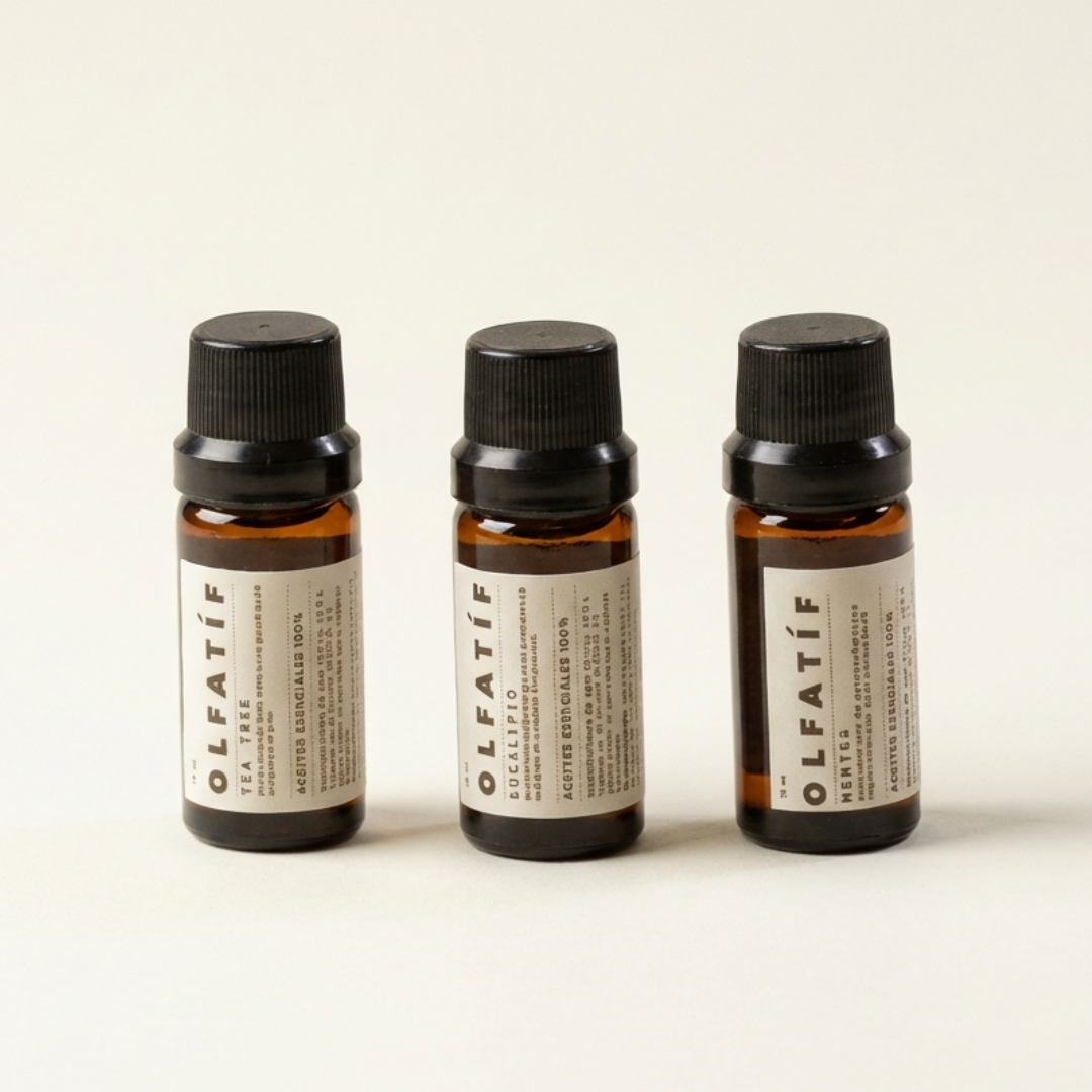 - Agregue 3 gotas de tea tree, 2 gotas de eucalipto australiano, 2 gotas de menta piperita a su difusor Olfatif.