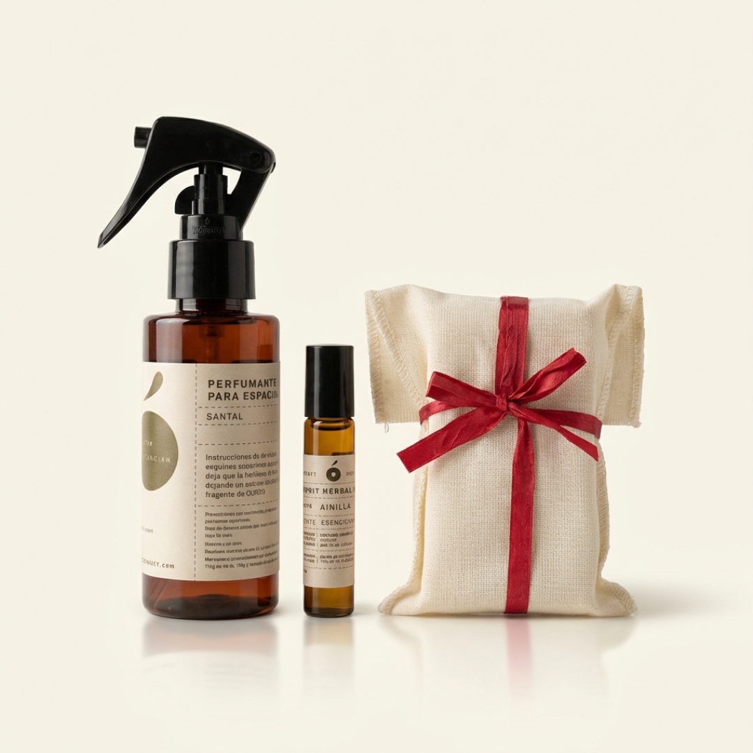 Este set tranquilizante con notas de: Vainilla, almendra, tonka, manera de ámbar, y aceites esenciales de eucalipto y lavandín lavanda contiene: